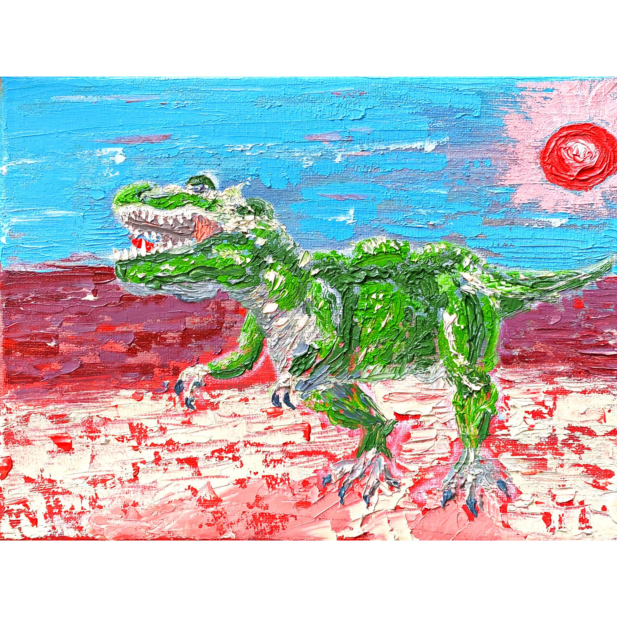 Dinosaur Painting Desert Original Art Canvas Art Impasto Oil Etsy Uk